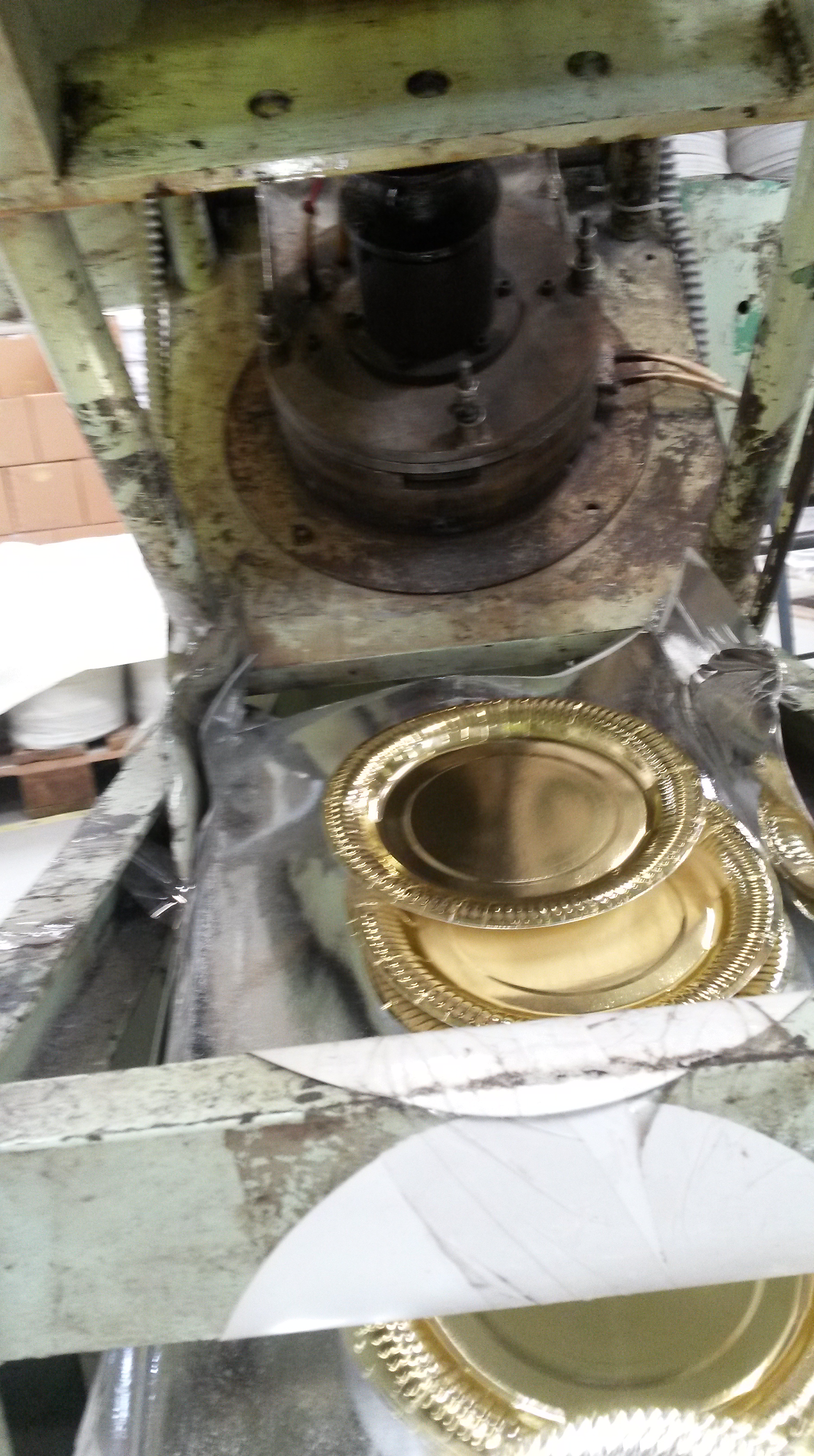 - Similar to the process of paper cups, paper plates also start out as a piece of cardboard. The cardboard is then put into the machine shown below. The two ends of the machine converge and engrave the shape of the plate onto the cardboard. The force that the two ends of the machine exert squishes the sheet of cardboard onto the engravings. Due to the force the cardboard fits into the small depressions on the metal plate, engraving the shape of the paper plate onto the cardboard