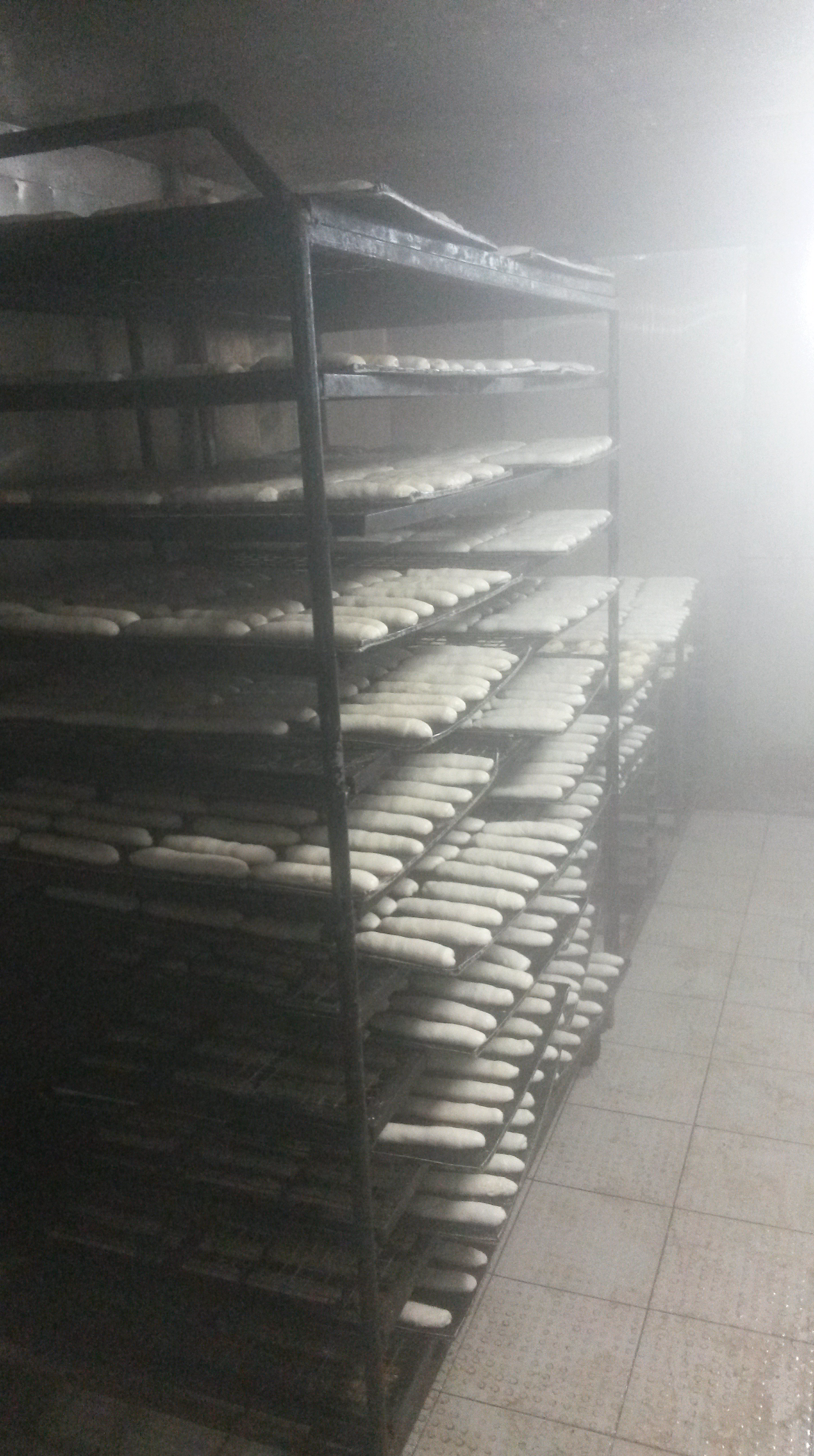 Proofing refers to the stage where the yeast is allowed to ferment and dough to rise before being put in the oven. It is put in the proofing room, which has a high temperature of about 60- 80 degrees Celsius, with the moisture level in the room regulated. The image below shows the proofing room: