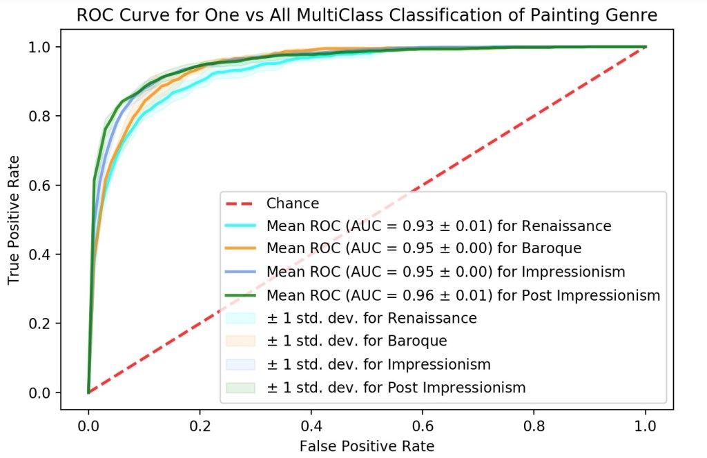 Given the wide variety of paintings throughout history, the stylistic differences between painting genres is highly subjective and often requires the judgment of human experts. Using the dataset Best Artworks of All Time and extracting features from paintings using convolutional neural networks (CNN’s), this project measures the effectiveness of more traditional supervised classifiers to identify a genre within Impressionism, Post-Impressionism, Renaissance and Baroque.